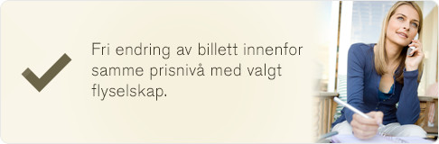 Vi tilbyr deg muligheten at du kan kjøpe en flybillett som kan bookes om med vårt tilleggsprodukt "Fleksibel billett".